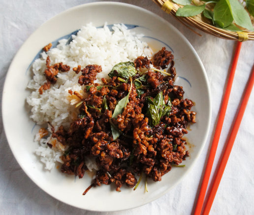 All the flavors of your favorite Chinese take-out, but in a healthier version! Ground turkey cooked with fresh ginger, garlic and vegetables and seasoned with rich hoisin sauce, soy and sesame. Served over steamed basmati rice.